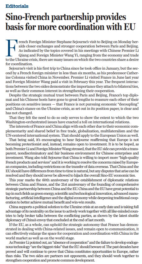 原文標(biāo)題:Sino-French partnership provides basis for more coordination with EU