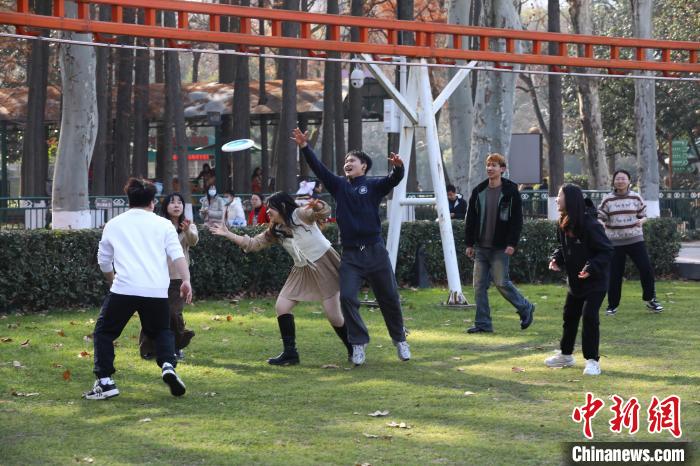 1月底,年輕人在武漢市中山公園玩飛盤?!垥?攝