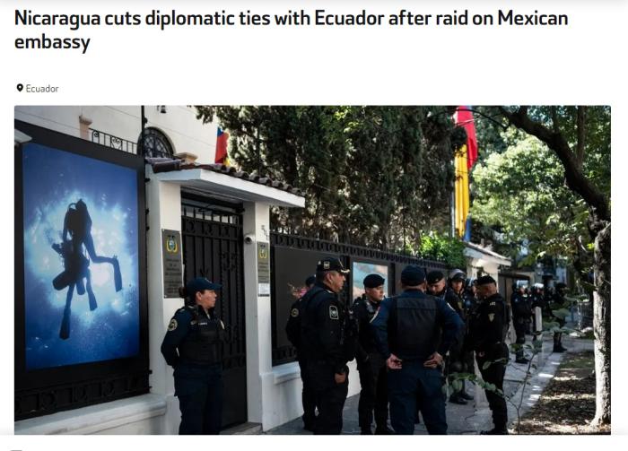 公告還稱,自公告發(fā)布起,尼方作出與厄瓜多爾政府正式斷絕所有外交關(guān)系的主權(quán)決定,并強(qiáng)調(diào)對國際法和國際公約的重視。