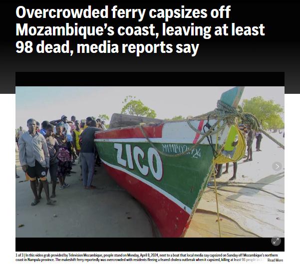 據(jù)報(bào)道,這艘載有約130人的渡輪7日在離開非洲東南部國(guó)家海岸前往附近的莫桑比克島后傾覆,目前已有至少11人住院。