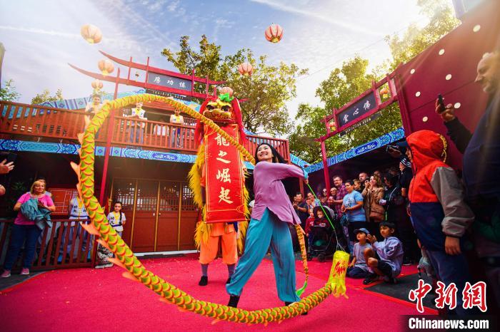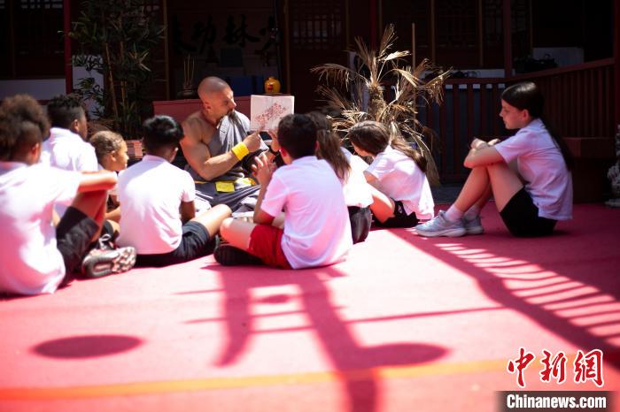 2023年7月22日,在武館舉辦的社區(qū)開放日活動(dòng)上,白龍和常春向?qū)W生展示武術(shù)。 鐘欣 攝