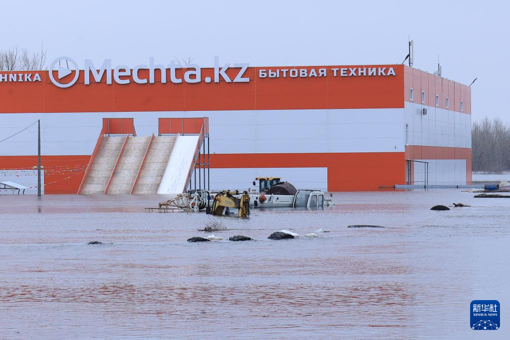 4月7日,哈薩克斯坦科斯塔奈州的一家電器商場被洪水淹沒。新華社發(fā)(哈薩克斯坦緊急情況部供圖)