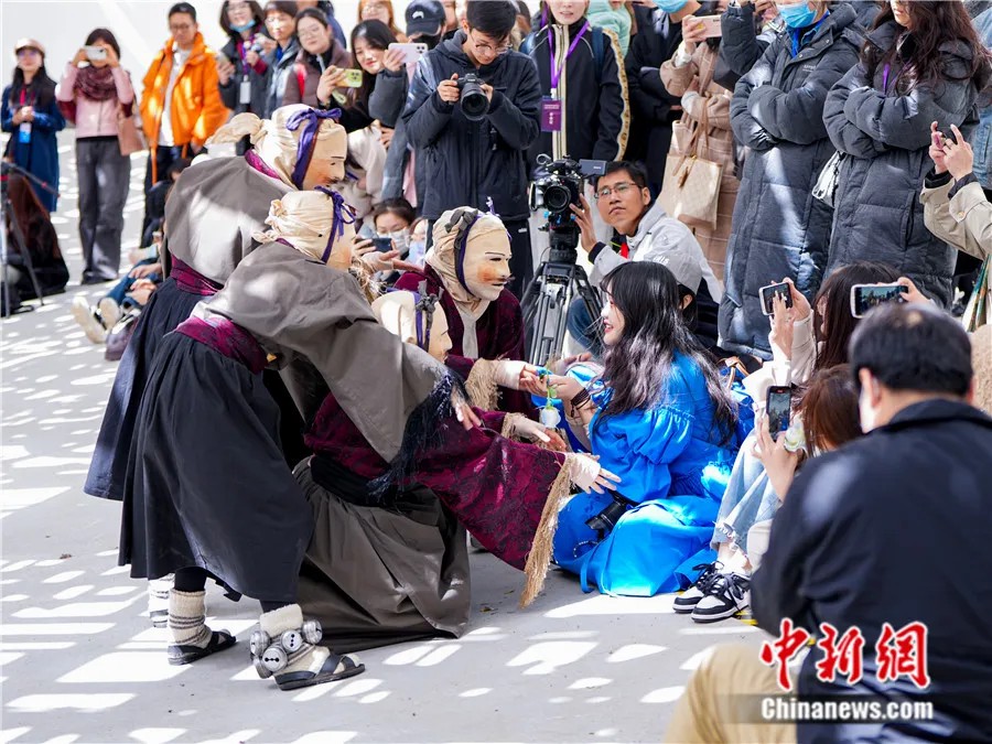 2024年3月28日,2024年世界戲劇日慶典活動中,參加戲劇工坊演出的智利劇團(tuán)演員與觀眾互動。活動主辦方供圖