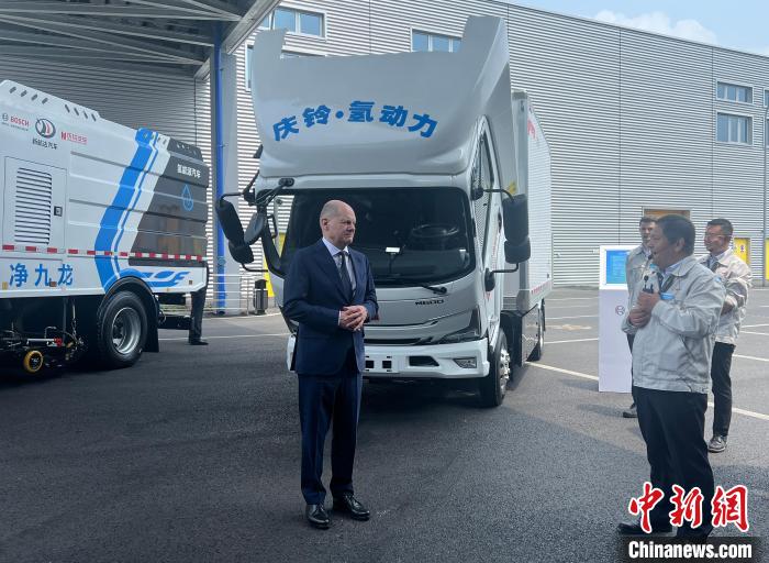 博世氫動(dòng)力系統(tǒng)(重慶)有限公司是朔爾茨訪渝首站參觀地。該公司由博世與慶鈴汽車合資建立,致力于將博世氫燃料電池解決方案引入中國(guó)市場(chǎng)。在參訪點(diǎn)入口,四輛冷鏈物流、環(huán)衛(wèi)及牽引車等依次停放。這些車全為中國(guó)國(guó)產(chǎn)汽車,使用博世氫動(dòng)力系統(tǒng)(重慶)有限公司出產(chǎn)的氫動(dòng)力模塊。朔爾茨在企業(yè)相關(guān)負(fù)責(zé)人的介紹下,了解博世與中企合作的最新成果。在工作人員指引下,朔爾茨為完成預(yù)裝的氫動(dòng)力模塊拴緊最后一顆螺絲,向身邊工作人員豎起了大拇指。