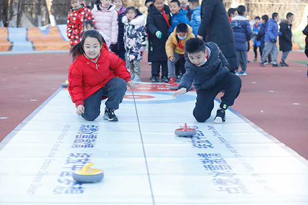 人民網(wǎng)北京12月30日電 (尹星云)12月30日,“筑夢(mèng)冰雪 相約冬奧”——北京朝陽(yáng)區(qū)冰雪進(jìn)校園活動(dòng)在芳草地國(guó)際學(xué)校世紀(jì)小學(xué)舉辦,學(xué)生們?cè)诮叹殕T的指導(dǎo)下,學(xué)習(xí)體驗(yàn)旱地冰壺、冰雪射擊、短道速滑、模擬滑雪體驗(yàn)、翻越雪山、俯式冰橇、冰球運(yùn)球等多項(xiàng)冰雪運(yùn)動(dòng)。在享受項(xiàng)目帶來(lái)的快樂的同時(shí),感受“更高、更快、更強(qiáng)、更團(tuán)結(jié)”的奧林匹克格言,也為即將舉辦的北京冬奧會(huì)送上自己的祝福。