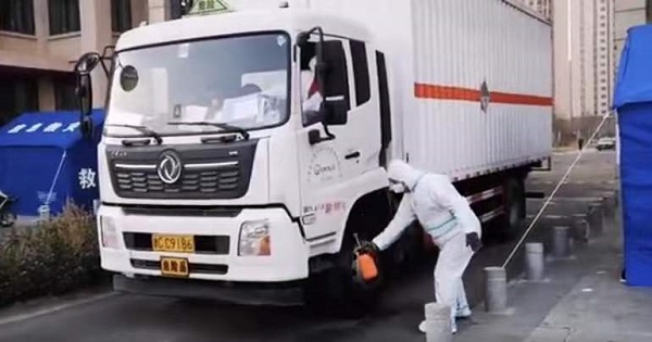 為防疫車(chē)輛進(jìn)行消殺。天津市紀(jì)委監(jiān)委供圖