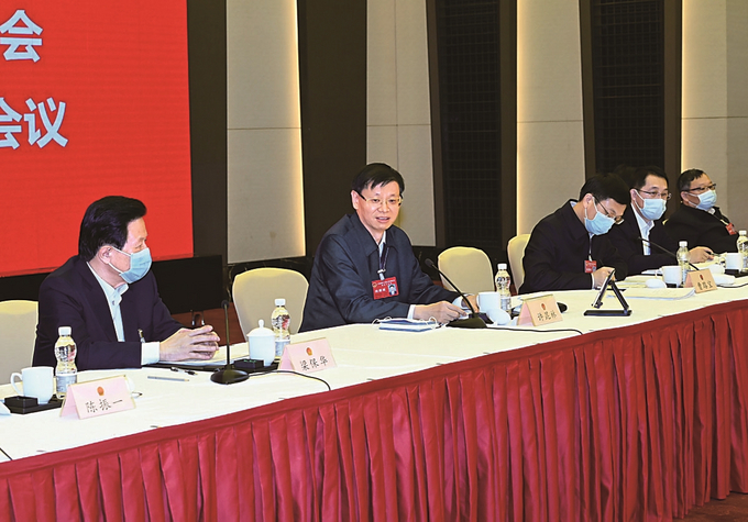 20日下午,省人大代表,省委副書(shū)記、代省長(zhǎng)許昆林到所在的蘇州代表團(tuán),與代表們一起審議政府工作報(bào)告。 本報(bào)記者 朱江 攝