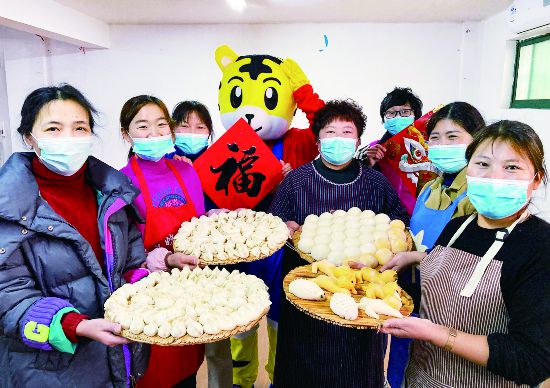 1月19日,在金華婺城區(qū)城西街道河盤橋社區(qū)活動(dòng)室,部分留金過春節(jié)的外來務(wù)工人員一起做花饃、蒸饅頭、包餃子,提前感受家鄉(xiāng)過年的喜慶氣氛。河南開封籍的于紅霞說,今年她響應(yīng)政府號(hào)召留金過春節(jié),丈夫平時(shí)開大貨車,常年奔波在外,非常辛苦,趁著春節(jié)可以在家里好好休息,她準(zhǔn)備了一些家鄉(xiāng)特色的菜肴和面食。(時(shí)寬兵)