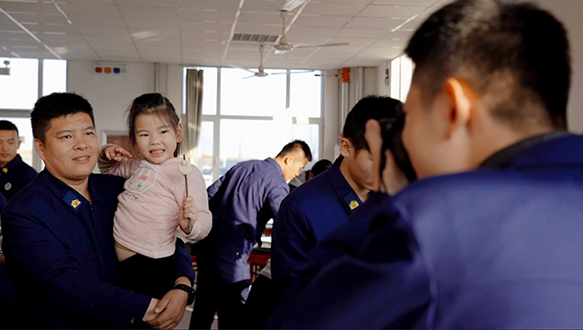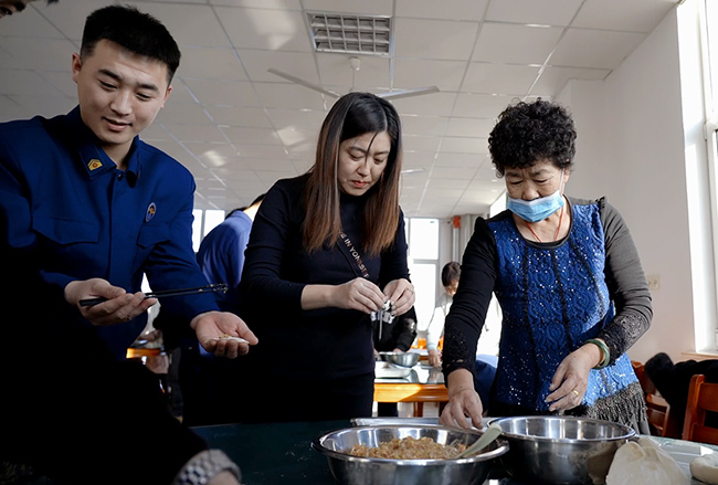 室外寒氣襲人,室內(nèi)溫暖四溢,其樂(lè)融融,消防救援人員及家屬在消防站貼窗花、掛燈籠……參觀中,孩子們稚嫩的聲音回蕩在消防站中,增添了一絲童趣;包水餃環(huán)節(jié),大家分工協(xié)作,你搟皮,我包餡,氣氛和諧,洋溢著“家”的味道,讓這個(gè)冬天情意滿滿。吃餃子、話家常,應(yīng)和著這溫暖的氛圍,大家圍坐在一起感受著濃濃的年味,昔日嚴(yán)肅的食堂充斥著歡聲笑語(yǔ)。在場(chǎng)一位消防救援人員的家屬表示:“孩子爸爸平時(shí)回家少,工作環(huán)境又比較危險(xiǎn),作為家屬我們能做的就是全力支持他們的工作,今天來(lái)隊(duì)參觀對(duì)他平時(shí)的工作也多了一分了解,以后我會(huì)更加支持他的!”