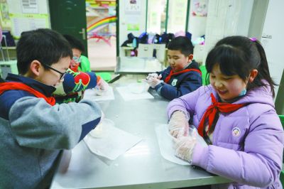 昨天,小學生在鼓樓區(qū)南財大附小參加小廚神社團活動。 南京日報/紫金山新聞記者 徐琦 攝
