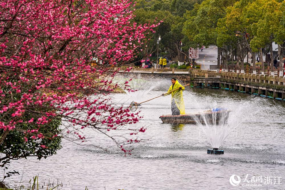 盡管天空飄著細(xì)雨,舟山普陀山司基畈河上,河道保潔員仍在辛勤工作著,打撈水面漂浮物,保護水生態(tài)環(huán)境……守護一汪碧綠的清水,已成為普陀山人的習(xí)慣。