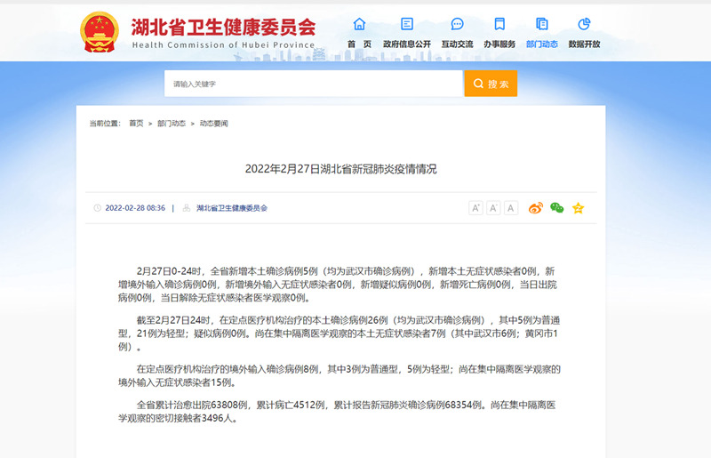 湖北省衛(wèi)生健康委員會網(wǎng)頁截圖。