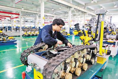 中信重工開(kāi)誠(chéng)智能裝備有限公司組裝人員正在組裝消防機(jī)器人底盤(pán)。 中信重工開(kāi)誠(chéng)智能裝備有限公司供圖