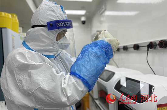 “在華大技術(shù)人員的協(xié)助下,來自河北各地支援的醫(yī)務(wù)人員已完成對生物安全知識、儀器設(shè)備使用注意事項等方面的工作梳理和培訓(xùn)。實驗人員在輪班的情況下,保證實驗室能夠24小時運轉(zhuǎn)以達到相應(yīng)的日檢測通量?!蓖踉品颊f。(林福盛、吳源生)