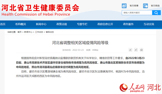河北省調(diào)整相關(guān)區(qū)域疫情風險等級