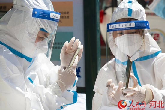 張振是滄州市人民醫(yī)院胃腸外科的護士。去年,他曾到藁城支援核酸采集工作。這一次,接到緊急任務(wù)通知后,有核酸采集經(jīng)驗的他再次與同事奔赴核酸采集點?!扒皫滋煳覀冊诤游鞅苯稚鐓^(qū)采集核酸,每人每天大概要采600余人的樣本?!彪娫捓?,張振的聲音略微沙啞。
