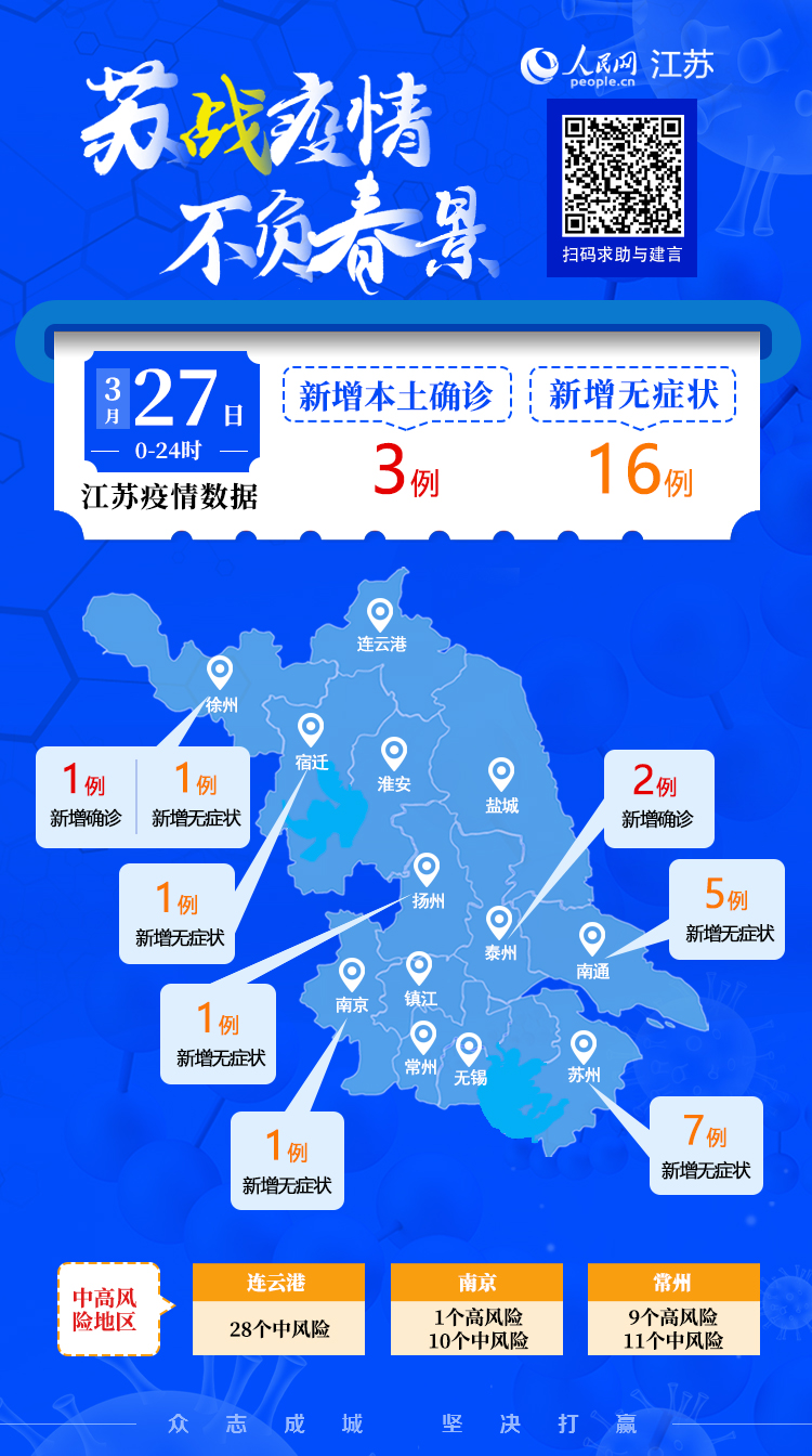 3月27日江蘇新增本土確診病例3例 本土無(wú)癥狀感染者16例