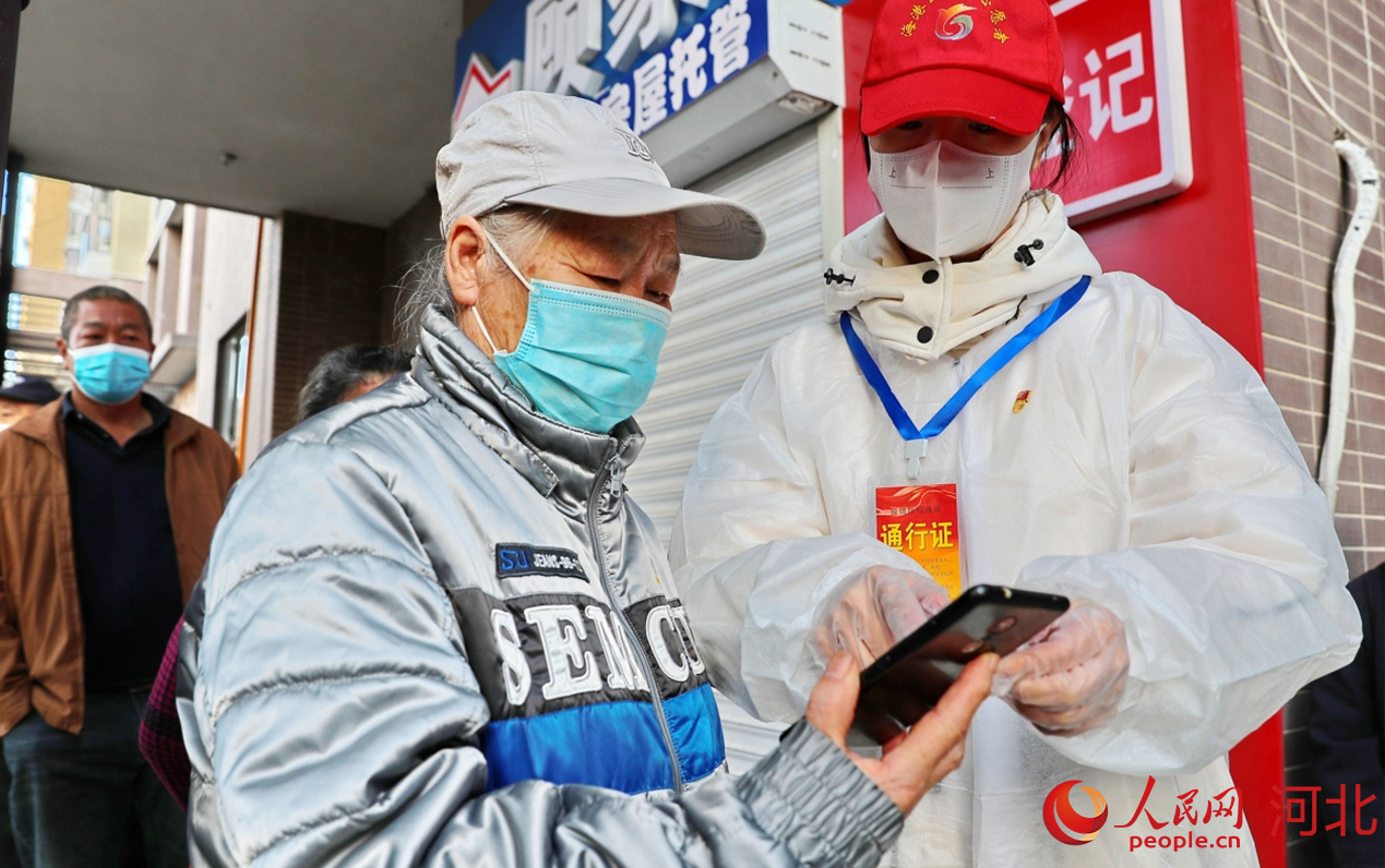 人民網(wǎng)石家莊3月27日電 “打開電子健康碼?!薄氨3趾?米距離。”……3月25日上午9點,在河北秦皇島市海港區(qū)森林逸城小區(qū),秦皇島市委組織部黨員先鋒隊隊員董菁正在組織居民有序排隊做核酸檢測,提醒大家準備好電子健康碼,耐心指導不熟悉操作流程的居民。