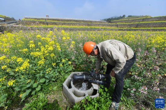 3月29日,在杭州市富陽區(qū)新登街道潘堰村的“海綿農(nóng)田”內,工作人員查看農(nóng)田下的地下隱形水庫水泵運行情況。