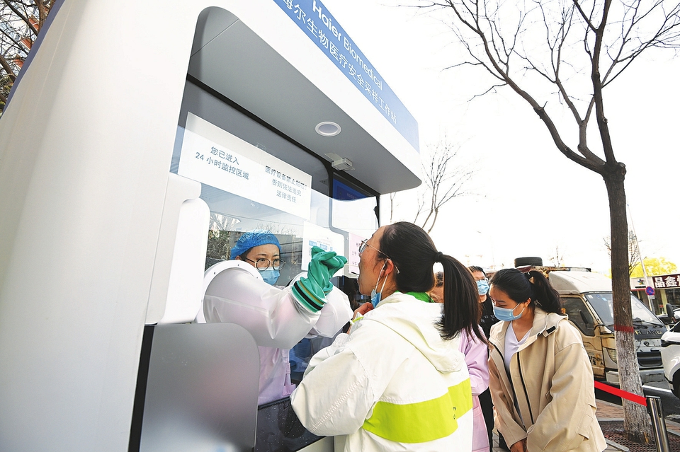 4月5日,太原萬柏林區(qū)麗華苑北門便民核酸檢測點,市民有序排隊登記進行核酸檢測。據(jù)了解,近期萬柏林區(qū)新增7處便民核酸檢測點,有效提升核酸檢測效率,全方位織密疫情防控網(wǎng)。(記者阮洋攝)