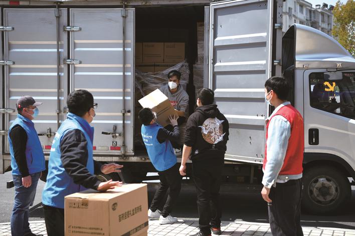 4月6日,在嘉興南湖區(qū)東柵街道雙溪社區(qū),愛心企業(yè)在嘉興團市委的統(tǒng)籌下,將一批牛奶等愛心物資送到抗疫一線。當天,該愛心企業(yè)將1200箱牛奶分別送至嘉興南湖區(qū)、秀洲區(qū)、經開區(qū)、桐鄉(xiāng)市和海寧市的“疫”線志愿者手中,為他們送去溫暖。(王振宇)