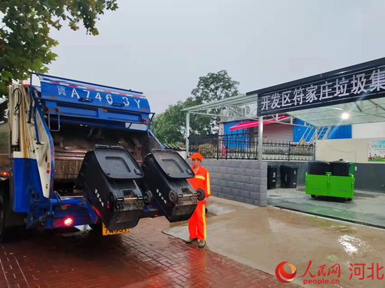 一大清早,在石家莊市鹿泉經(jīng)濟(jì)開發(fā)區(qū)符家莊村,保潔員馮琴芳正和同事們一起入戶收集生活垃圾,電動(dòng)收集車上四個(gè)垃圾桶裝滿后,保潔員將垃圾統(tǒng)一運(yùn)送到村里的垃圾集中分類點(diǎn)。