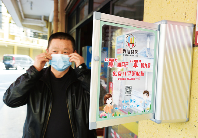 近日,浙江義烏福田街道興隆社區(qū)在轄區(qū)內(nèi)主干道出入口、人員密集的超市、藥店、快遞點(diǎn)等地設(shè)置免費(fèi)口罩領(lǐng)取箱,箱里放滿了口罩,箱體上寫著“文明領(lǐng)取,每人限領(lǐng)一個(gè)”?;顒?dòng)開展半個(gè)月以來(lái),6個(gè)免費(fèi)口罩領(lǐng)取箱共送出近6000個(gè)口罩。興隆社區(qū)黨委書記黃俊鋼表示,除了設(shè)立免費(fèi)口罩領(lǐng)取箱,社區(qū)還大力開展佩戴口罩勸導(dǎo)活動(dòng)。(錢旭升)