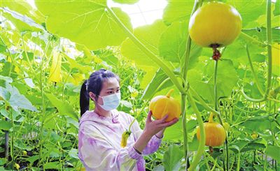 鄉(xiāng)村“采摘游”成為市民娛樂休閑的新選擇。日前,位于北辰區(qū)雙街鎮(zhèn)的農(nóng)業(yè)產(chǎn)業(yè)園果蔬采摘園中,金絲南瓜已進入成熟期,吸引市民前來采摘。(記者 孫立偉 攝)