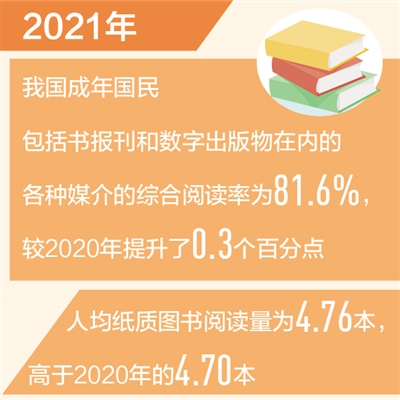2021年我國成年國民綜合閱讀率為81.6%(新數據 新看點)