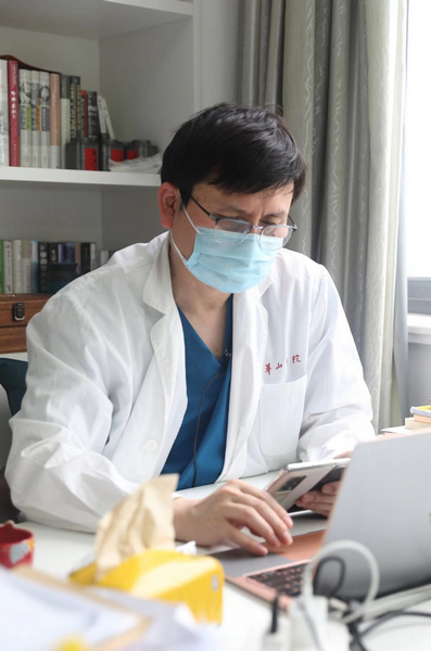 緊接著,張文宏和100余位專家視頻連線,會(huì)診各定點(diǎn)醫(yī)院的重癥患者。他在線聽(tīng)到了好消息,“有一例危重型患者,兩次核酸陰性;還有3例基礎(chǔ)病重癥患者由原先的基礎(chǔ)病重癥轉(zhuǎn)為輕癥”……連線結(jié)束,他快速接受了大江東工作室的專訪,后面,他還有一場(chǎng)專家討論會(huì)要參加。