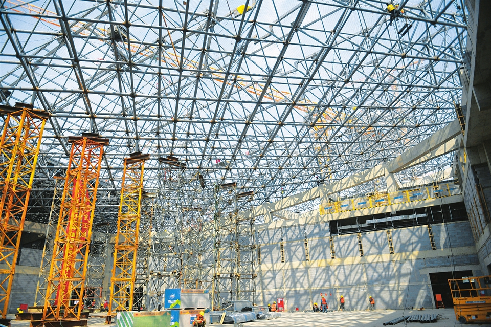 4月24日,瀟河國際會(huì)議中心建設(shè)現(xiàn)場,施工人員在做好疫情防控的基礎(chǔ)上,嚴(yán)守安全生產(chǎn)底線,搶抓施工進(jìn)度。(記者王瑞瑞攝)
