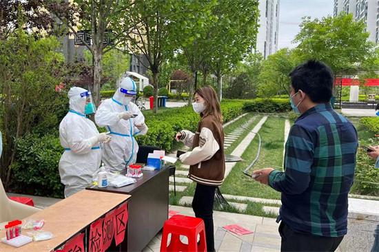 志愿者協(xié)助醫(yī)務(wù)人員開(kāi)展核酸檢測(cè)。 劉琦攝