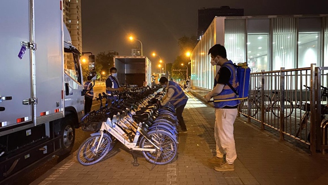 哈啰單車北京團隊負責(zé)人胡濤介紹,近期團隊臨時增加42名運維人員和12輛調(diào)度車輛投入抗疫保障行動。對每輛共享單車在出庫、入庫、調(diào)運等環(huán)節(jié)中實施100%消毒,在重點景區(qū)、商圈、寫字樓以及北京站、王府井、崇文門、望京等軌道交通站點,每日分早中晚三個時段進行無差別消殺。
