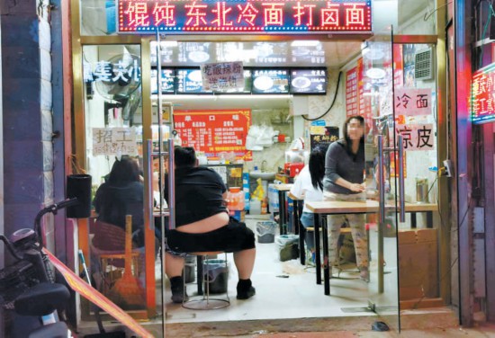 打開大眾點(diǎn)評,先選一些口碑爆棚的小吃打包,然后帶到周邊餐館里再點(diǎn)些菜,正餐、小吃都不耽誤,這是不少年輕人逛街的習(xí)慣。記者探訪發(fā)現(xiàn),目前在沿街大多數(shù)餐館不提供堂食服務(wù)的情況下,網(wǎng)紅小吃窗口前的顧客無處可去,久久不散。很多人在小吃窗口前“就地消化”,烤串、蛋糕,這些小吃食用方便,有沒有桌子、餐具都無所謂,在小吃窗口前找個(gè)椅子坐下,形成路邊大排檔,沒有桌子間隔著,用餐人員挨得更近了。