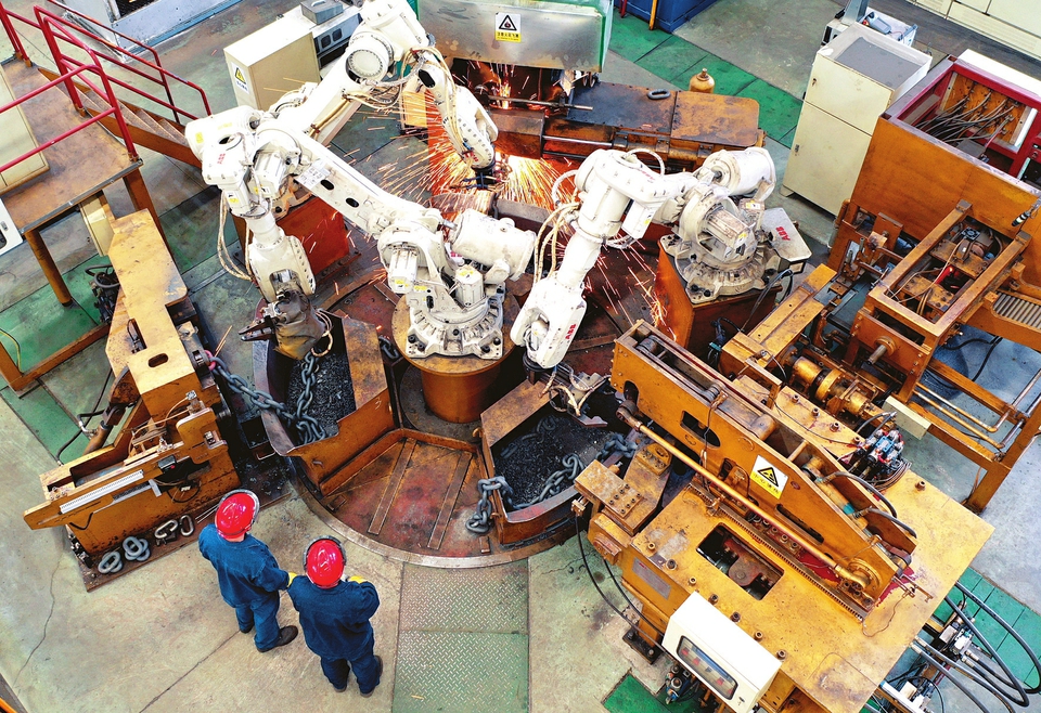 5月5日,在晉能控股裝備制造集團華越華茂公司生產車間,國內首套國產化礦用高強度圓環(huán)鏈全自動制鏈機組正在作業(yè)中。近年來,該公司不斷提升裝備能力,其生產的礦用高強度圓環(huán)鏈、緊湊鏈及各類工業(yè)用鏈條,工藝達到國內領先水平。(記者劉通攝)