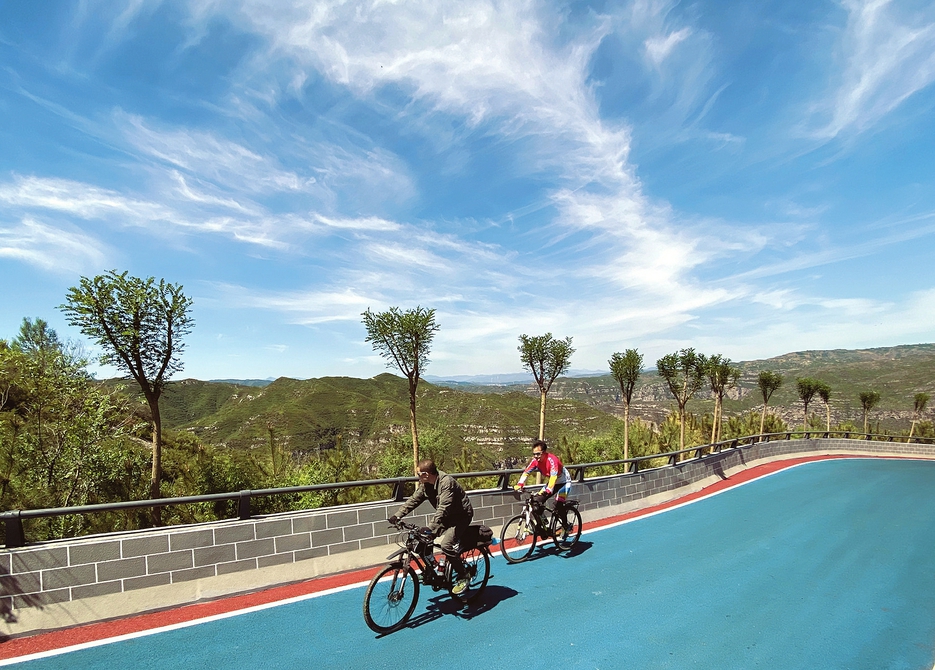5月5日,騎行愛好者精神煥發(fā)地騎行在太原西山自行車賽道上。自太原市環(huán)城公路自行車賽道建成以來,這條高標準公路就成為眾多騎行愛好者的健身“長廊”,并帶動越來越多的人加入到綠色健身的隊伍。(記者李兆民攝)
