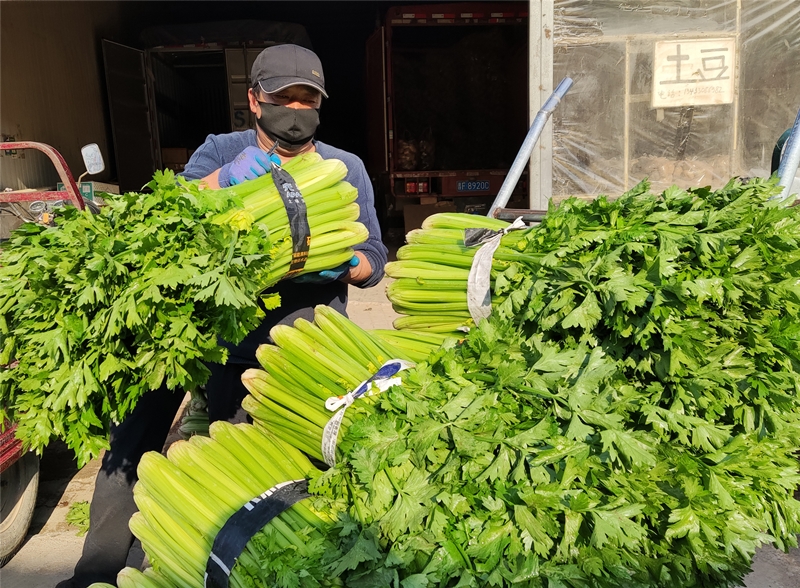 “市場每天大約回貨是40多輛車,蔬菜一百七八十噸,水果一百四五十噸。蘋果、梨、香蕉等常見水果及白菜、西紅柿、黃瓜等日常蔬菜供應(yīng)充足,可以充分滿足市民需求。”市場副經(jīng)理王健說。