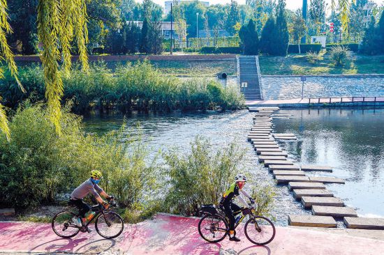 改造后的涼水河豐臺段沿岸綠化與慢行系統(tǒng)融合,為市民休閑騎行增添更多樣的景觀體驗(yàn)。 本報記者 鄧偉攝