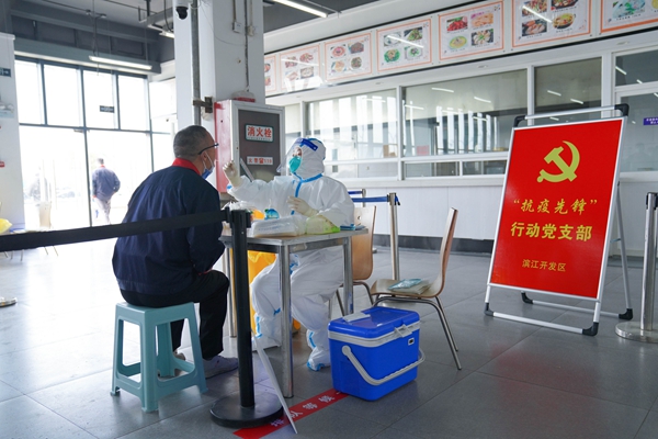 核酸檢測團隊走進制造業(yè)企業(yè)。濱江開發(fā)區(qū)供圖