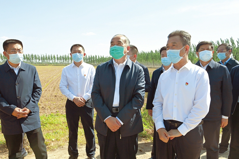 五月十七日下午,省委書記林武來到汾陽市賈家莊鎮(zhèn)古浮圖村,走進田間察看玉米、大豆幼苗長勢和土壤墑情。記者史曉波攝