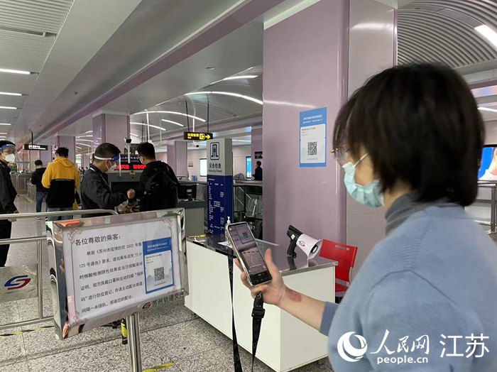 蘇州市民掃描場所碼進(jìn)站。人民網(wǎng)記者 王繼亮攝