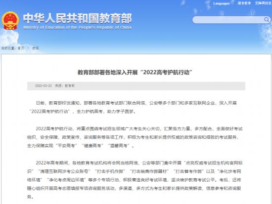 教育部部署各地深入開展“2022高考護航行動”