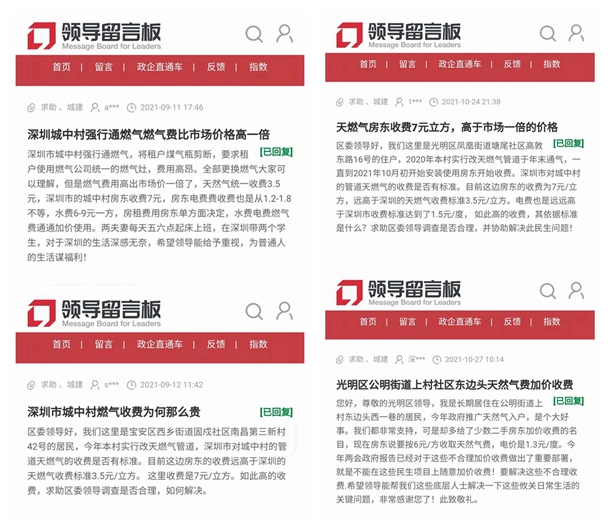 近年來,隨著深圳全力推進(jìn)城中村管道燃?xì)飧脑?,“二房東”亂收燃?xì)赓M(fèi)的現(xiàn)象層出不窮。多位深圳網(wǎng)友曾在人民網(wǎng)“領(lǐng)導(dǎo)留言板”留言,反映房東收取的燃?xì)赓M(fèi)遠(yuǎn)高于《深圳市燃?xì)鈨r(jià)格制度標(biāo)準(zhǔn)》?!罢茝V天然氣入戶,是個(gè)大好事,我們都非常支持,可是卻給了少數(shù)二手房東加價(jià)收費(fèi)的名目?!币晃痪W(wǎng)友說。