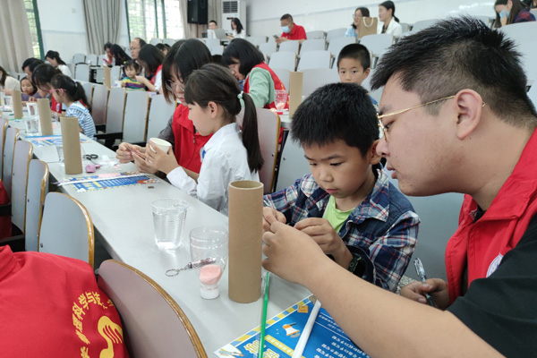 志愿者教孩子動手做科普。西南大學(xué)供圖