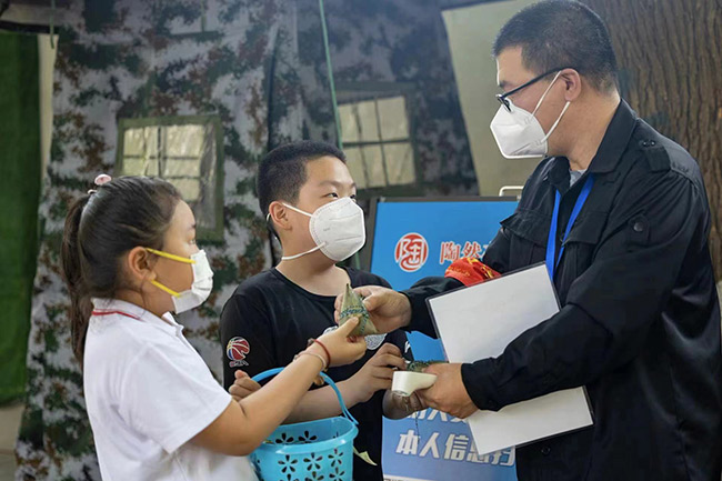 “六德少年”的魅力遠不止這些。在前不久陶然亭街道兒童中心開展的一次云端課堂上,一位百歲“太奶奶”顫抖著手教重孫女包粽子。幾天后,這些粽子便出現(xiàn)在“疫”線工作者的手中?!耙驗楹芏圄兆泳€都纏的不牢固,寶貝送的小心翼翼,后來我們才知道這粽子來之不易?!币晃弧耙摺本€工作者接過粽子后,豎起了大拇指。