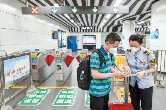 昨天起,票務(wù)升級測試覆蓋北京25條地鐵、321個車站,以及536條公交線路,刷卡(碼)自動核驗48小時內(nèi)核酸檢測結(jié)果。早上,記者在亮馬橋地鐵站看到,七成左右乘客已經(jīng)事先完成卡(碼)升級,自動刷閘進站。對于一些港澳臺同胞和外籍人士,乘務(wù)人員會幫助其完成線上升級,整個過程兩三分鐘。