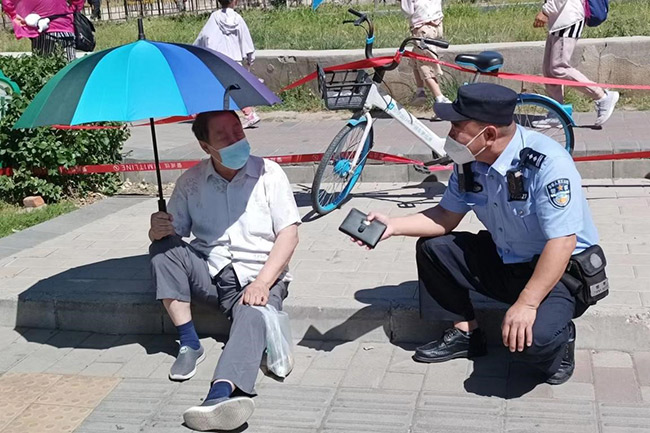 5月25日是朝陽區(qū)全域核酸篩查日。上午10點(diǎn),常營派出所民警馬占富正值守在萬象新天核酸檢測(cè)點(diǎn),突然聽到不遠(yuǎn)處群眾的呼救聲:“有人摔倒了!”