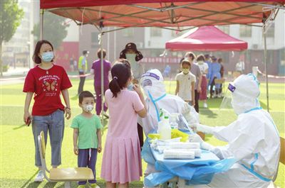 6月5日,天津市有序開(kāi)展全員核酸檢測(cè)。圖為南開(kāi)區(qū)中心小學(xué)核酸檢測(cè)采樣點(diǎn)現(xiàn)場(chǎng)。 記者 胡凌云 通訊員 王英浩 攝
