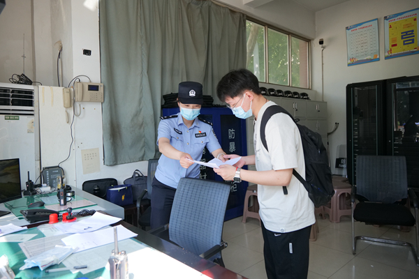 6月7日一早,在連云港灌南第二中學(xué)考點(diǎn)前,兩名考生向執(zhí)勤民警求助稱身份證遺忘在家中,駐守在考點(diǎn)的灌南縣公安局新安派出所戶籍工作人員核實(shí)身份后,現(xiàn)場(chǎng)為考生出具臨時(shí)身份證明,同樣用時(shí)不到5分鐘,保障考生順利開(kāi)考。