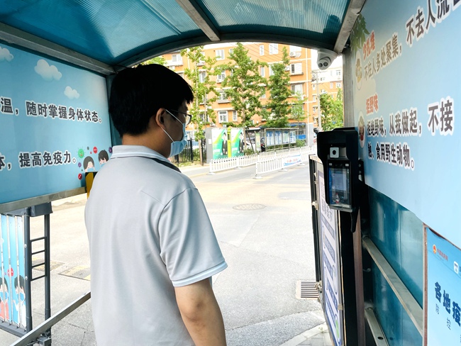 在石景山區(qū)八角中里社區(qū),記者看到原有智能門禁系統(tǒng)已完成升級,本小區(qū)居民只需在系統(tǒng)前站立一兩秒,健康寶狀態(tài)、核酸檢測時長等信息就在屏幕上顯示出來?!斑@個小區(qū)老年人比較多,查驗健康寶、核酸證明等需要頻繁操作手機(jī),對他們來說十分不便。”社區(qū)黨委書記李美紅介紹,小區(qū)智能門禁系統(tǒng)與“北京健康寶”信息對接后,將健康碼、核酸檢測核驗、小區(qū)居民身份查驗、測溫、門禁通道控制合為一體,省去人工查驗健康寶和測溫等環(huán)節(jié),小區(qū)卡口實(shí)現(xiàn)秒開門,對老年人來說尤其便利,也提升小區(qū)疫情防控工作效率。